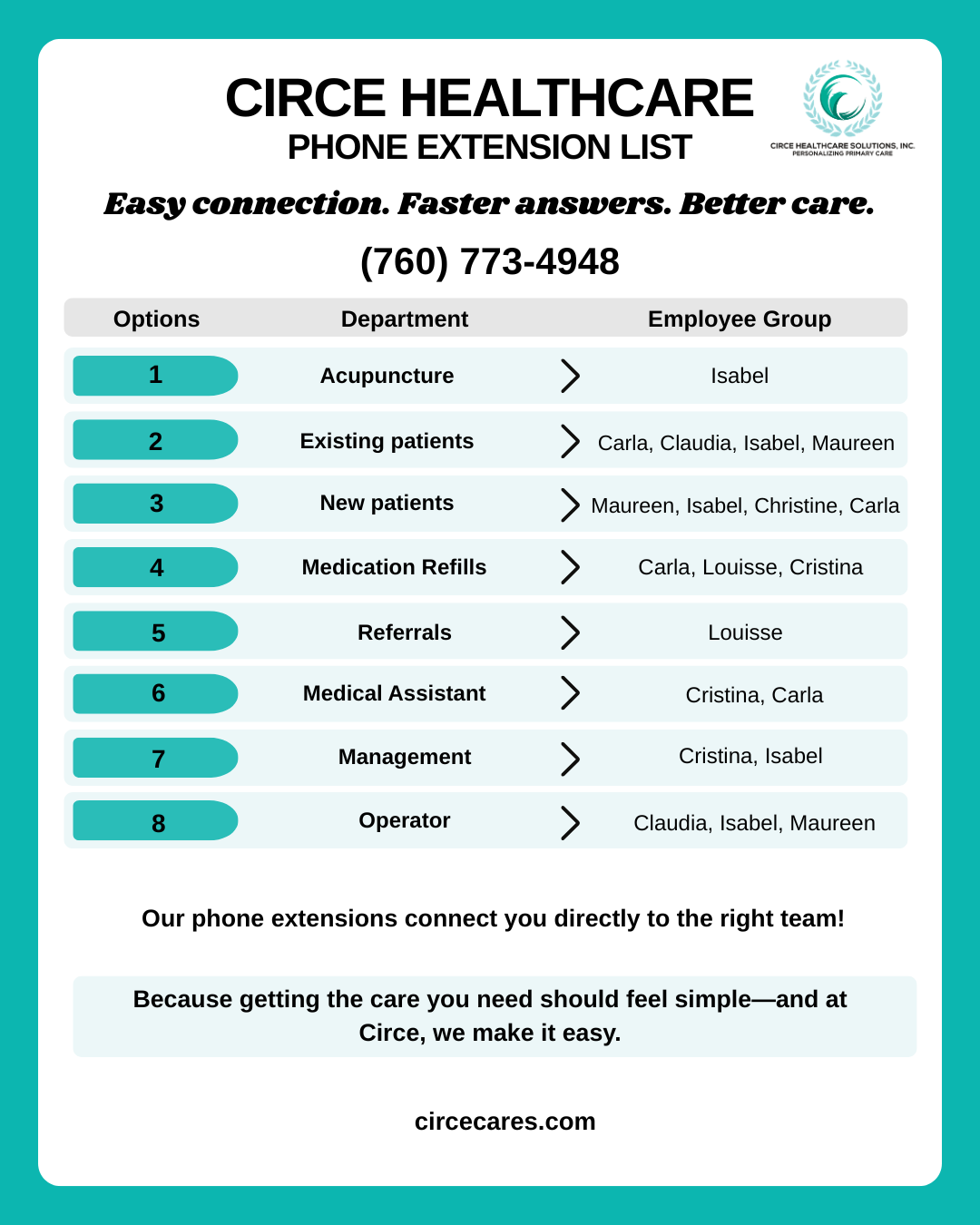 Circe Healthcare Solutions employs a holistic strategy focused on patient-centered care, and preventive medicine. Understanding each patient’s unique needs is fundamental to our mission.